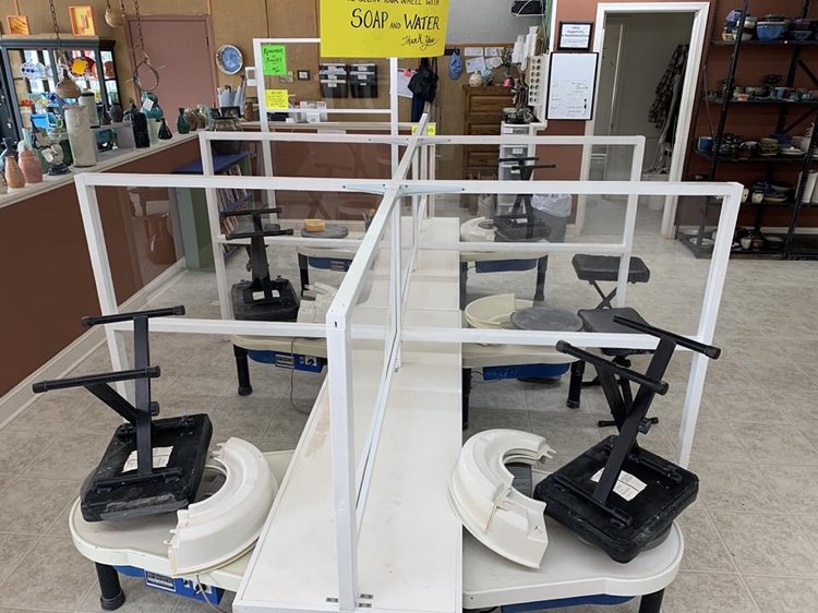 Our studio space boasts over 3000 square feet of modern equipment and facilities, including two electric Skutt kilns and 12 Shimpo pottery wheels. We have 32 glazes, all of which fire to Cone 6 and are free of lead and cadmium. Most glazes are food safe and your finished piece will be microwave, dishwasher, and oven safe.